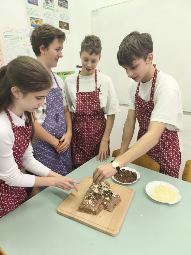 Z učenci 8. razreda smo pri interesni dejavnosti pričarali pravo francosko božično vzdušje! Skupaj smo spekli tradicionalno sladico Bûche de Noël – božično deblo, pri ustvarjanju pa se nam je pridružila tudi naša ravnateljica Metka Zorec, ki je z nami z veseljem zavihala rokave.
