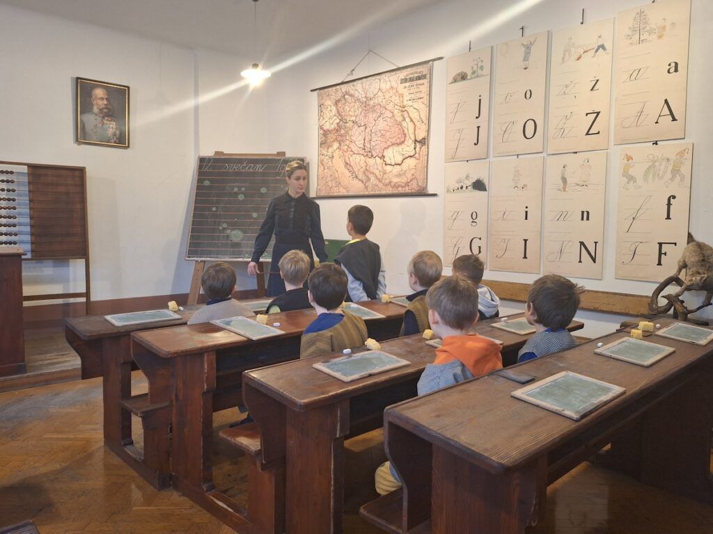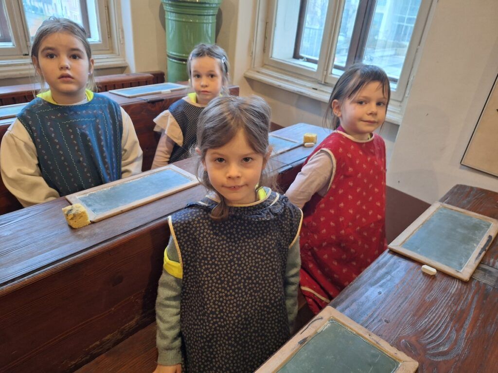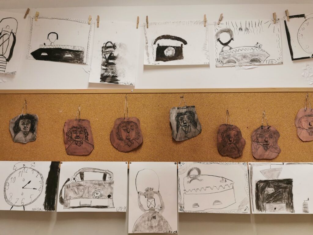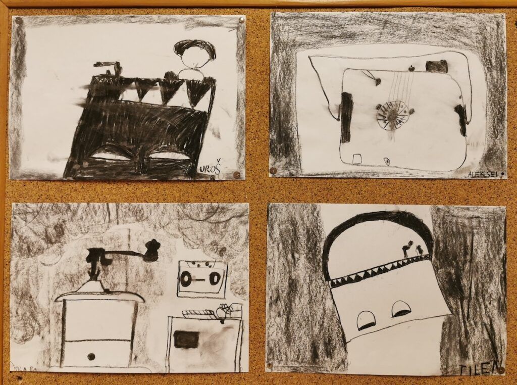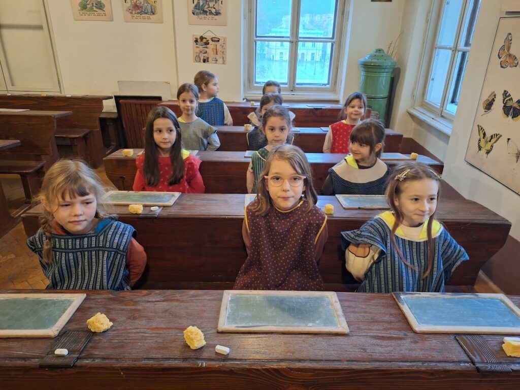 Pri urah spoznavanja okolja smo se podali v preteklost. Raziskovali smo, kako so ljudje živeli nekoč, kaj se je znašlo na njihovih krožnikih in kakšne šolske klopi so gulili naši predniki. Da bi preteklost še bolje spoznali, so učenci v šolo prinesli zanimive stare predmete, ki so jih pri likovni umetnosti upodobili z ogljem. V četrtek, 12. 2. 2026, smo obiskali Slovenski šolski muzej. Tam smo za kratek čas postali učenci iz starih časov in na lastni koži izkusili takratno šolsko disciplino in pouk.