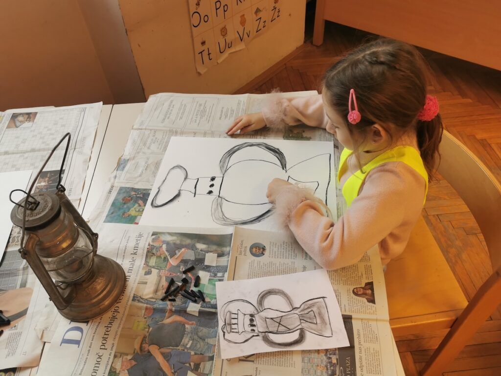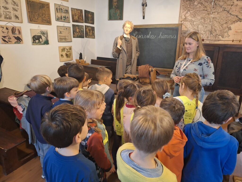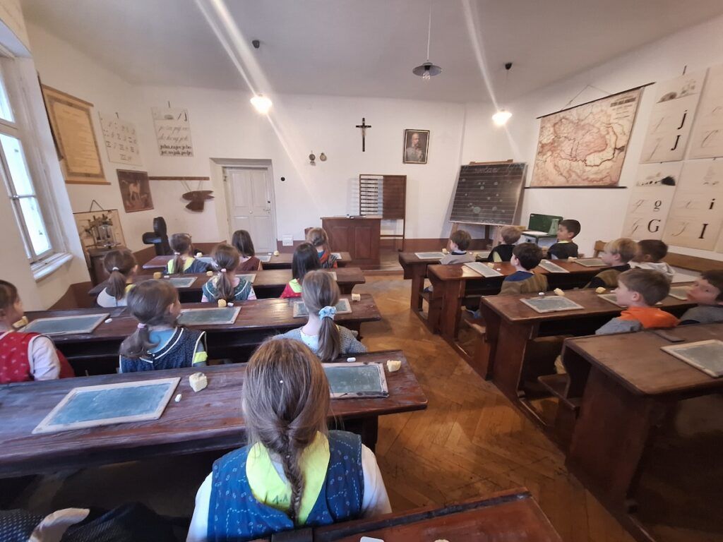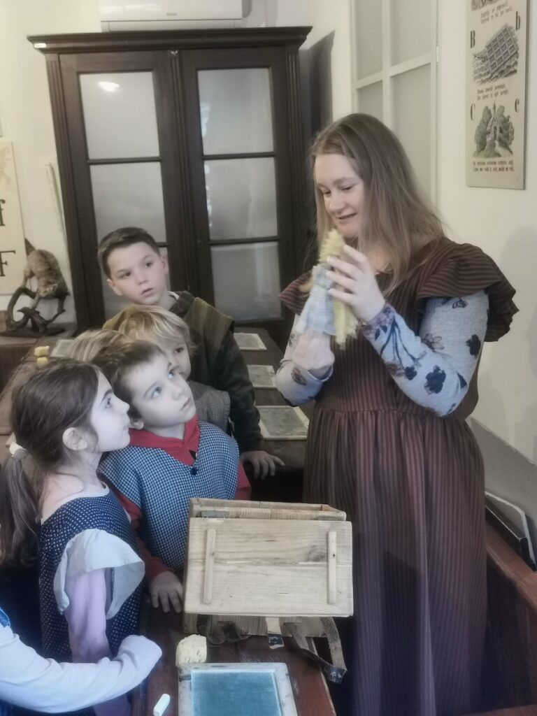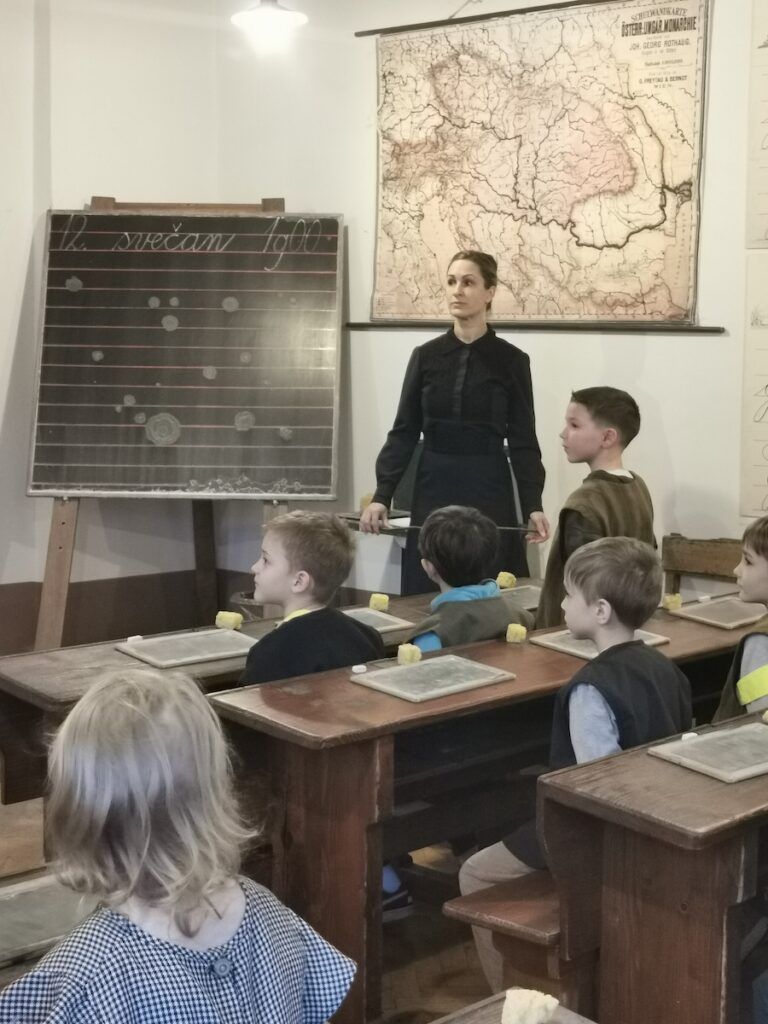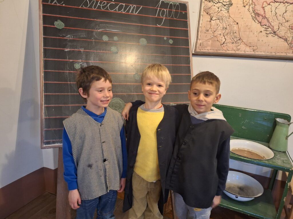 Pri urah spoznavanja okolja smo se podali v preteklost. Raziskovali smo, kako so ljudje živeli nekoč, kaj se je znašlo na njihovih krožnikih in kakšne šolske klopi so gulili naši predniki. Da bi preteklost še bolje spoznali, so učenci v šolo prinesli zanimive stare predmete, ki so jih pri likovni umetnosti upodobili z ogljem. V četrtek, 12. 2. 2026, smo obiskali Slovenski šolski muzej. Tam smo za kratek čas postali učenci iz starih časov in na lastni koži izkusili takratno šolsko disciplino in pouk.